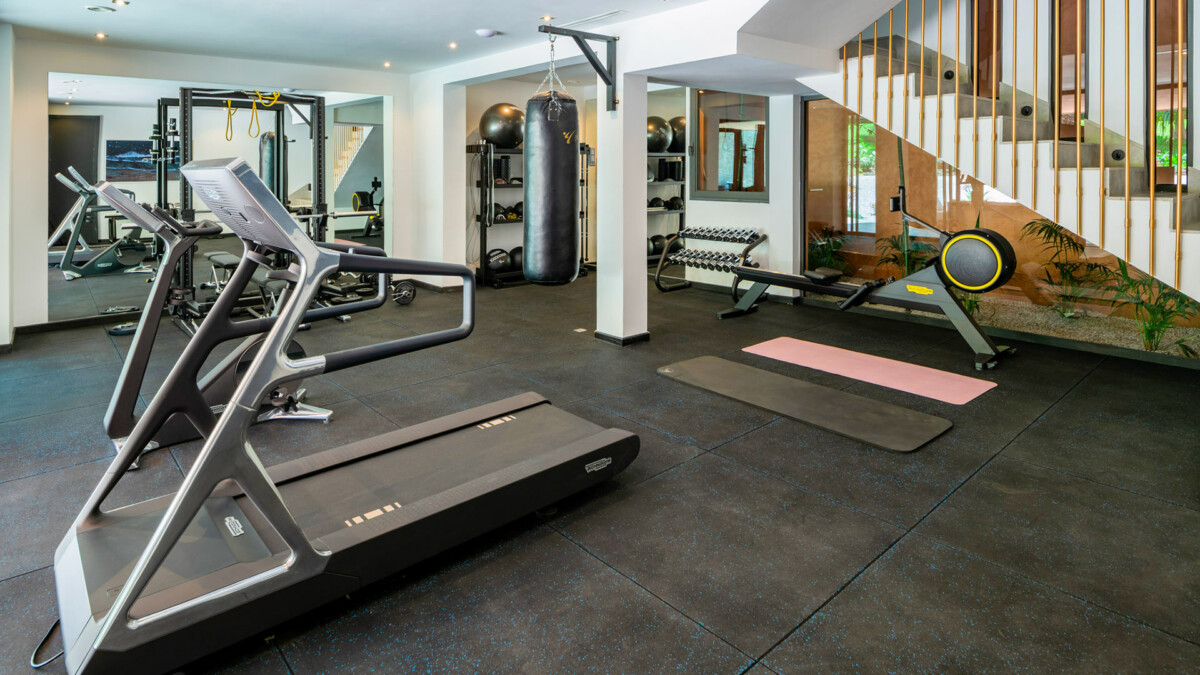 La maison dispose également d’une salle de sport ouverte sur une terrasse et d’une salle de cinéma.
