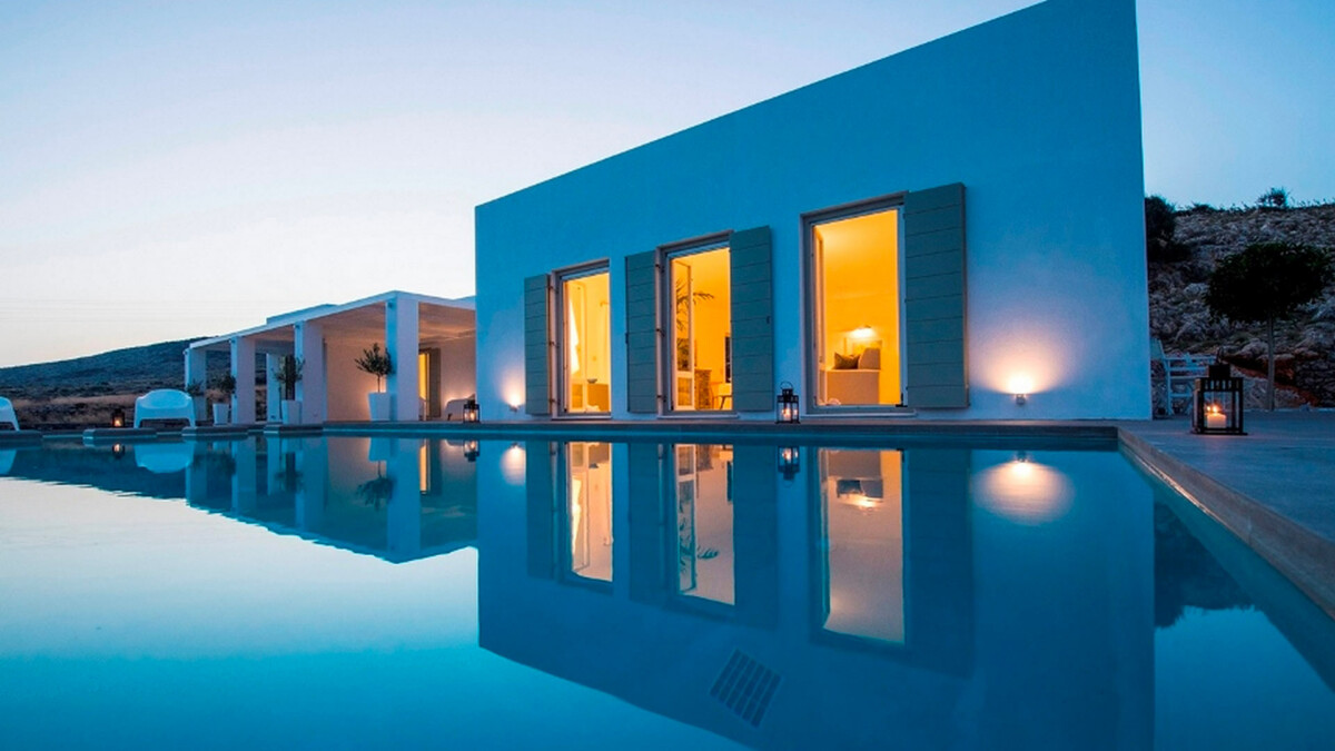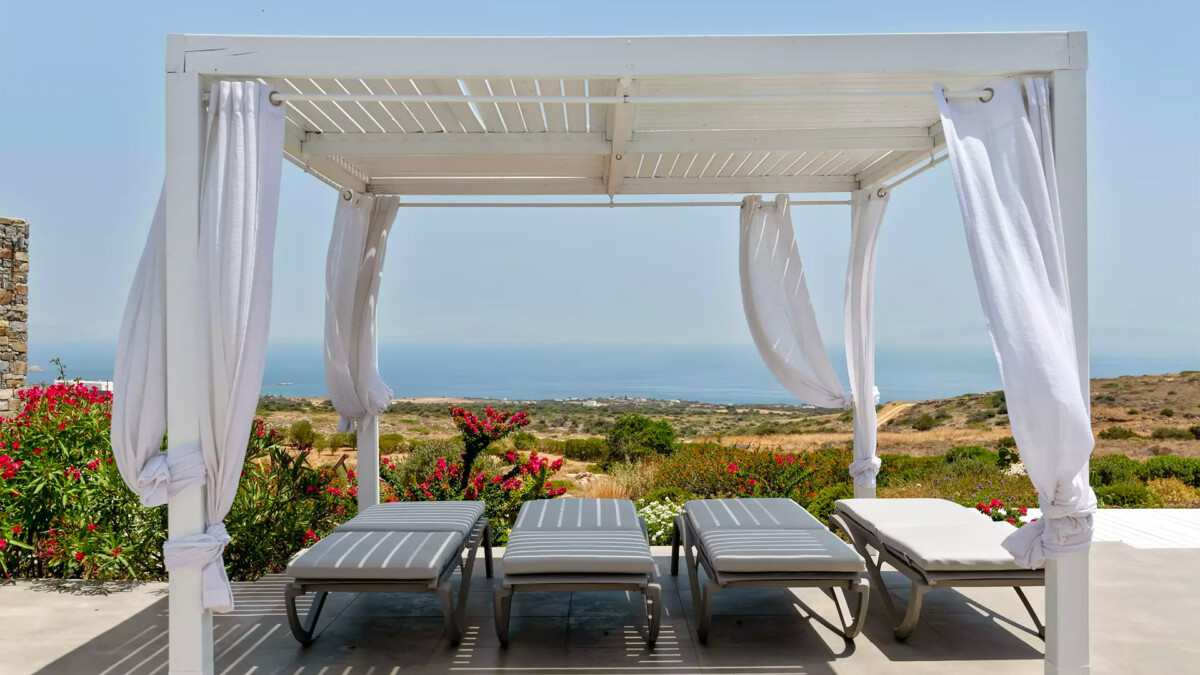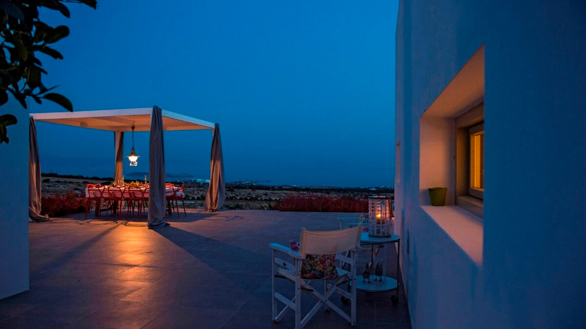 La villa Zakina se trouve sur une colline du sud de l’ile de Paros, offrant une superbe vue sur la mer Egée, l’ile de Naxos et les îlots de l’archipel. La piscine et la terrasse de la maison bénéficie de cette vue à couper le souffle. La propriété se compose d’une partie principale avec les pièces à vivre, et de pavillons annexes.