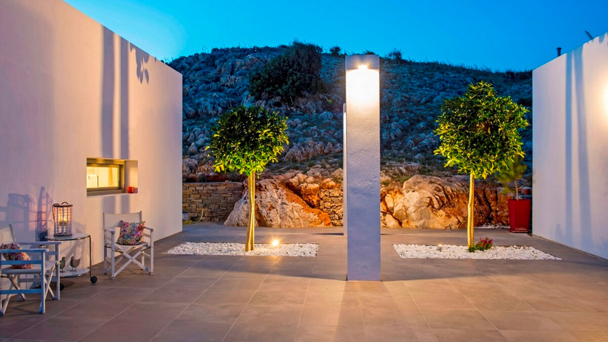 Le maison principale dispose d’un salon avec cheminée, d’une salle à manger pour 8 personnes et d’une cuisine équipée. Les ambiances sont modernes et minimalistes. Cette propriété est très lumineuse grâce à la clarté des matériaux. Le mobilier de salle à manger a été travaillé par de grands designers. La cuisine entièrement équipée est composée d’inox et de corian. La maison est entièrement climatisé.