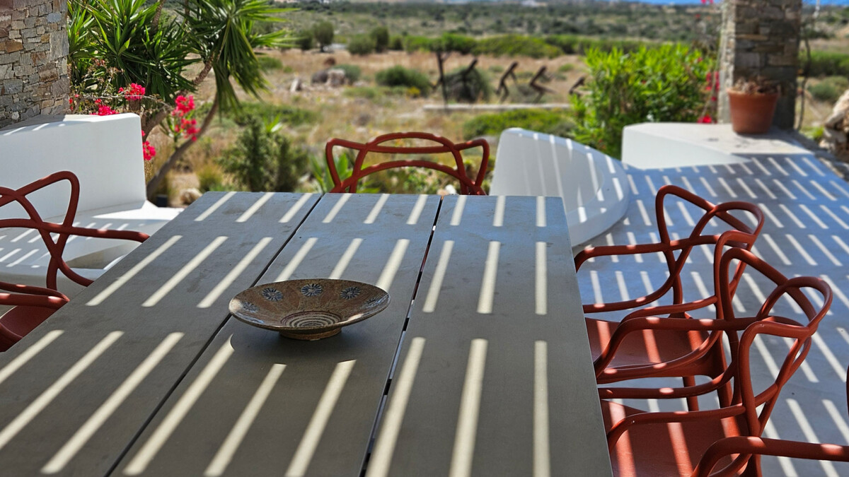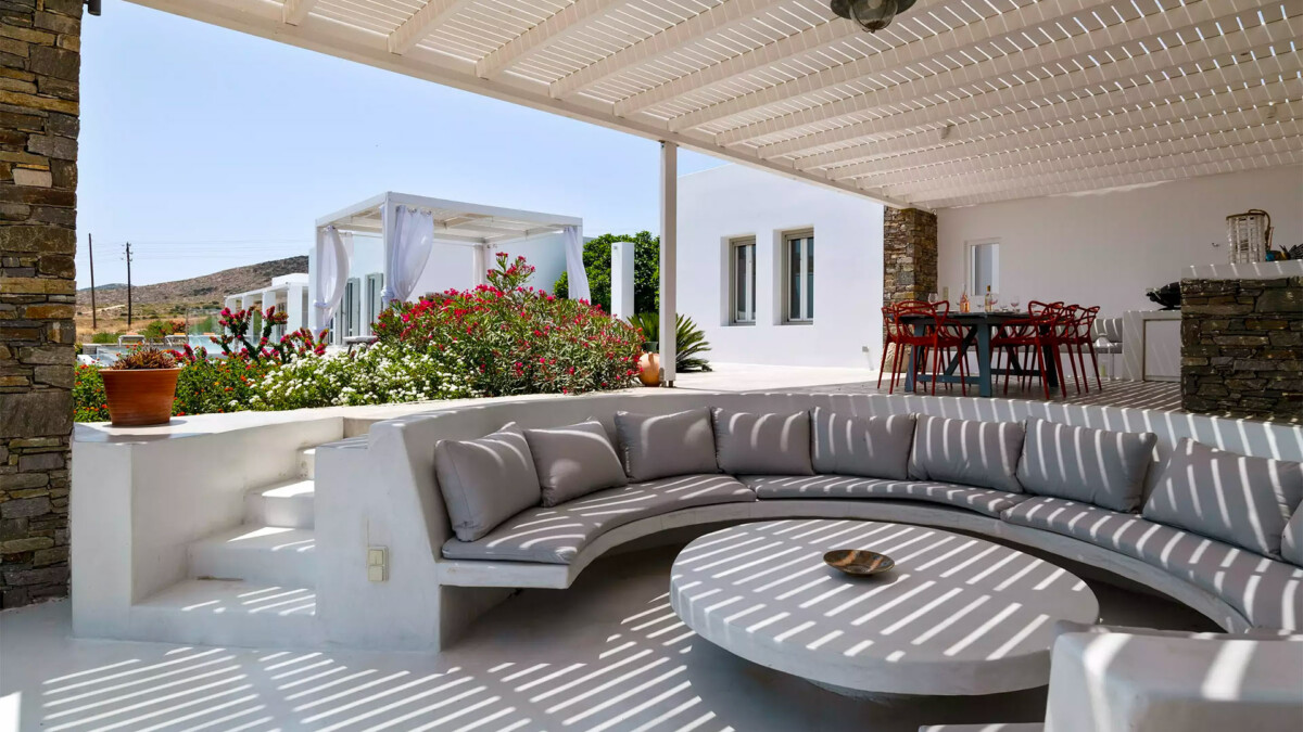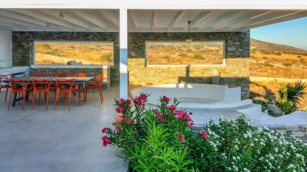 La villa est située au sud de Paros dans la région d’Algéria, dans un environnement tranquille et privilégié, proche de la mer avec un peu de voisinage. La propriété est située près de deux des plus belles plages de l’île, Frangas 10 mins et Golden Beach 7 mins.