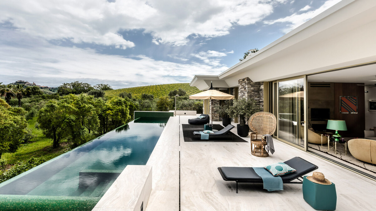 La Villa Zarri, nichée au nord de la région italienne des Abruzzes, incarne l’élégance contemporaine au cœur d’un paysage de vignobles et d’oliveraies. Conçue par le célèbre architecte d’intérieur Davide Rizzo, cette villa de 280 m² fusionne harmonieusement les espaces intérieurs et extérieurs, s’inspirant de l’architecture californienne du milieu du siècle. Avec ses trois chambres élégantes pouvant accueillir jusqu’à 6 personnes, chacune dotée d’une salle de bain attenante, ses vastes terrasses, sa cuisine extérieure et sa piscine à débordement, la villa offre un cadre idéal pour des vacances près de la côte adriatique.