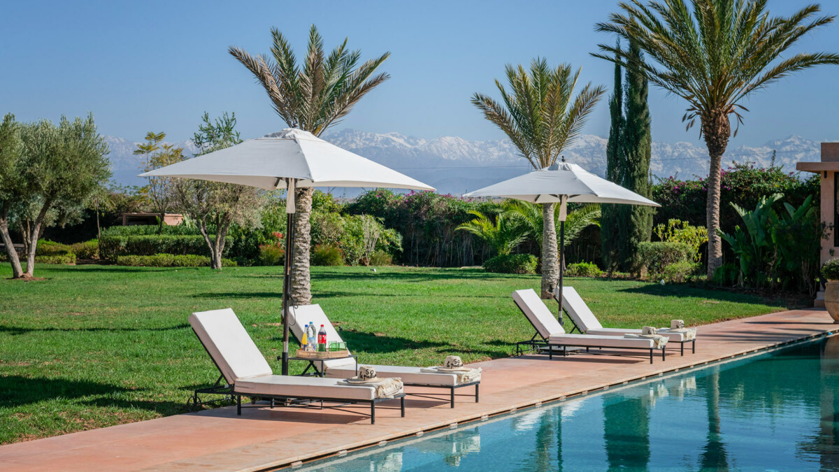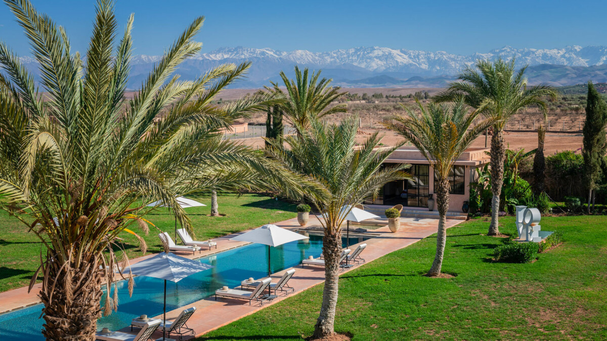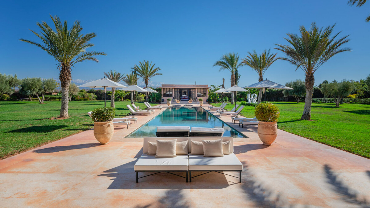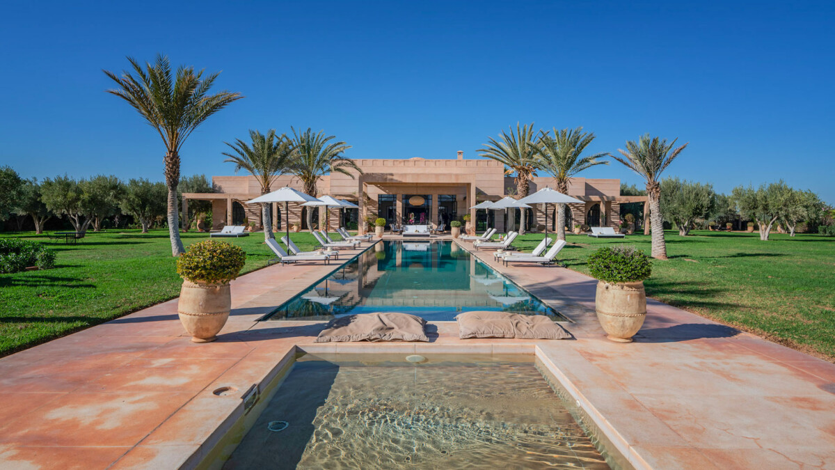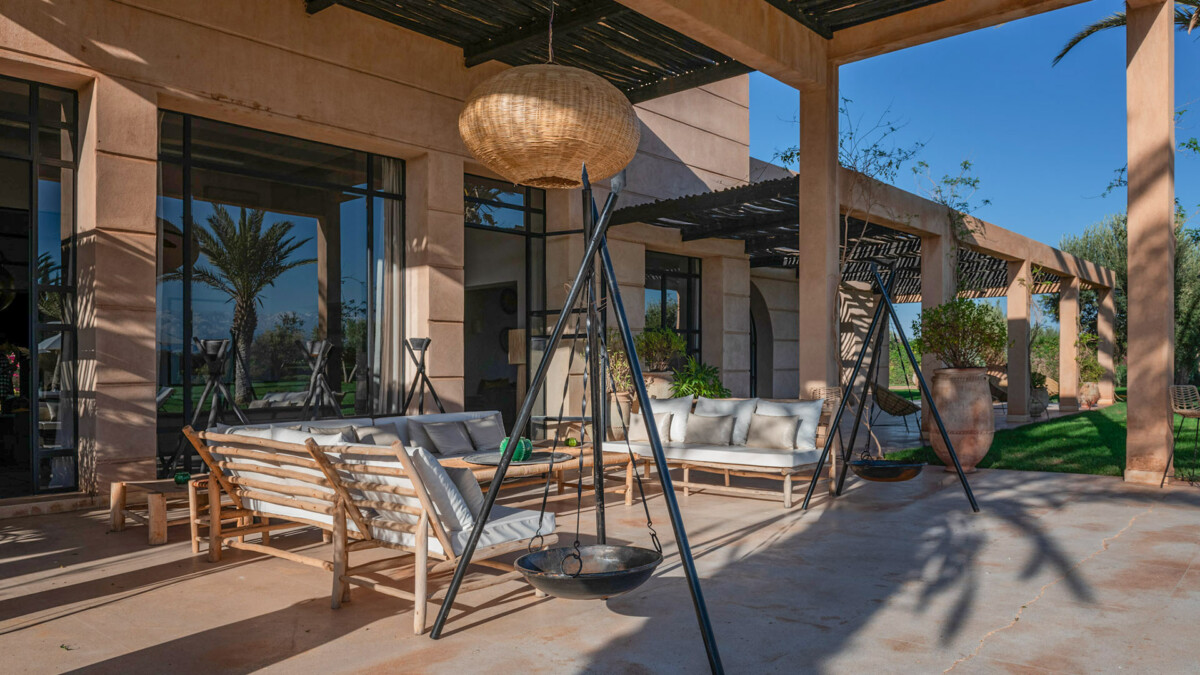 This superb 9-room residence, bathed in unchanging light, will delight you with its elegant sobriety, orchestrated by the renowned Marrakech decorator, Corinne Bensimon, who subtly blends modern comfort with the Beldi Chic elements of Moroccan craftsmanship. On the spot, take advantage of our services for your well-being, notably thanks to a personal chef who will prepare your meals, as well as our hammam and massage area for moments of intense relaxation.