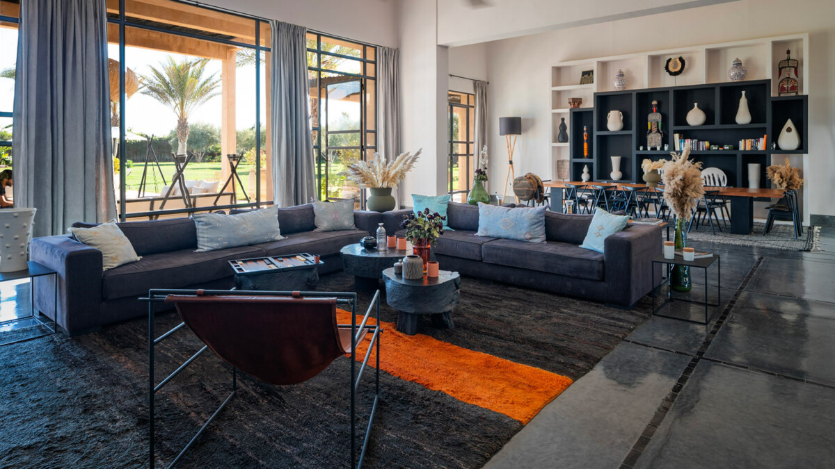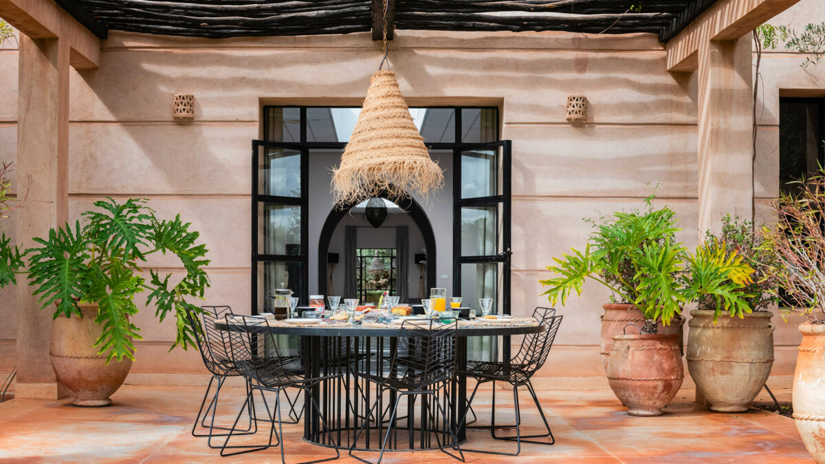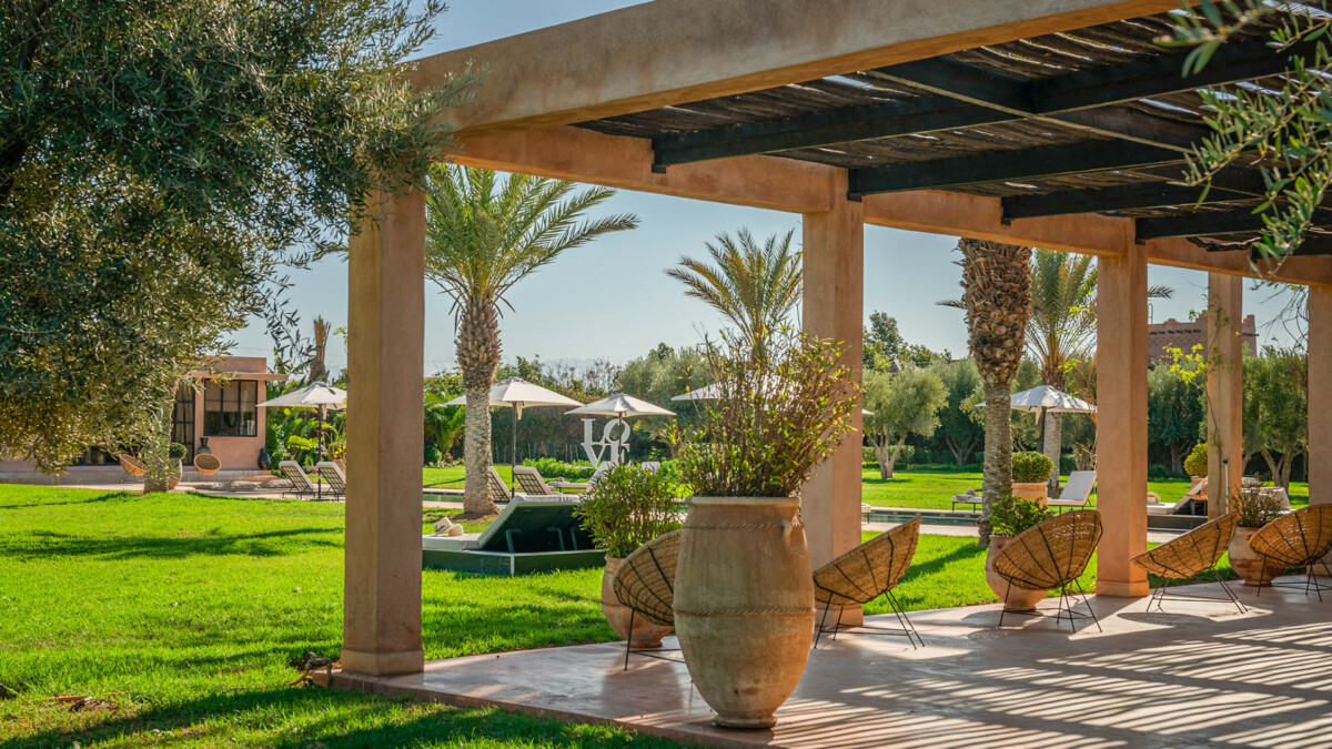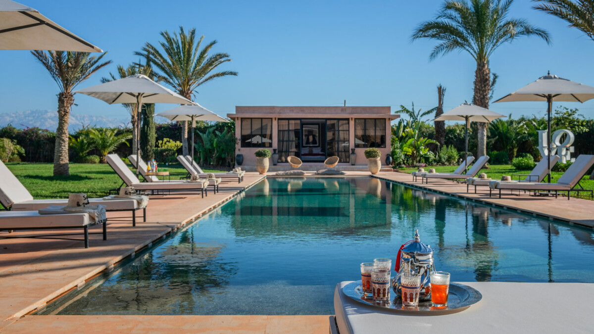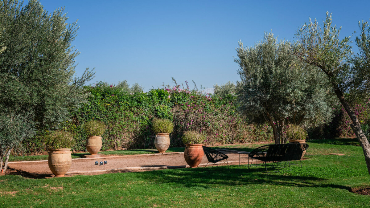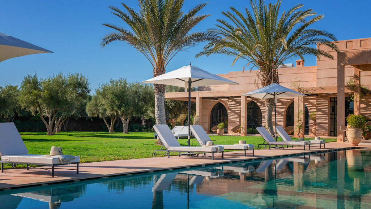 This superb 9-room residence, bathed in unchanging light, will delight you with its elegant sobriety, orchestrated by the renowned Marrakech decorator, Corinne Bensimon, who subtly blends modern comfort with the Beldi Chic elements of Moroccan craftsmanship. On the spot, take advantage of our services for your well-being, notably thanks to a personal chef who will prepare your meals, as well as our hammam and massage area for moments of intense relaxation.