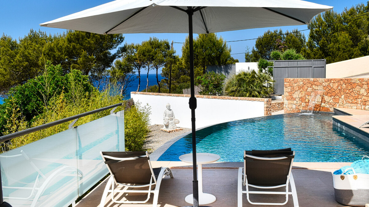 Les plages les plus proches sont Cala Tarida, Cala Conta, Cala Bassa, Cala Moli, Cala Vadella et Cala d’Hort.