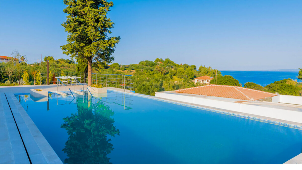 Une véranda mène à la piscine. Le niveau de la piscine offre une piscine privée nouvellement construite (13 x 6 mètres) avec des moyens de chauffage, quatre lits de massage relaxants et quatre lits jacuzzi dans la piscine, un salon extérieur avec chaises longues et parasols, salle à manger et barbecue.